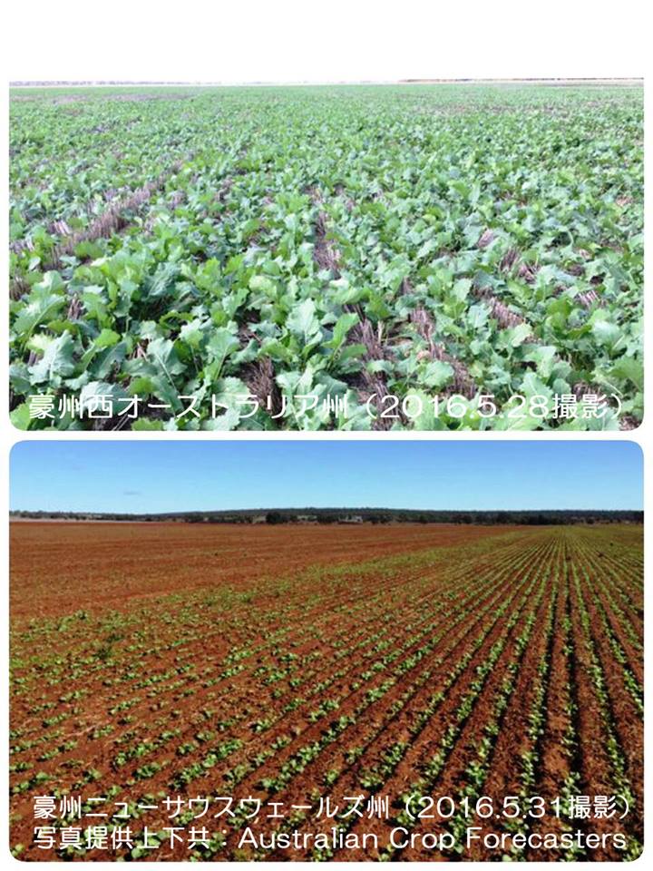 上の写真は、西オーストラリア州の5月28日現在のなたね畑の様子です。西オーストラリア州では、シーズン初期に降雨に恵まれ、例年より播種作業が早く進展しました。