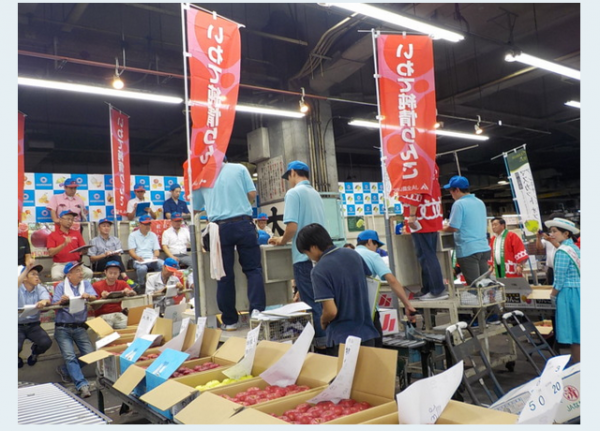 本日、JAいわて花巻代表者等による「紅いわて」の販売セレモニーが行われました。