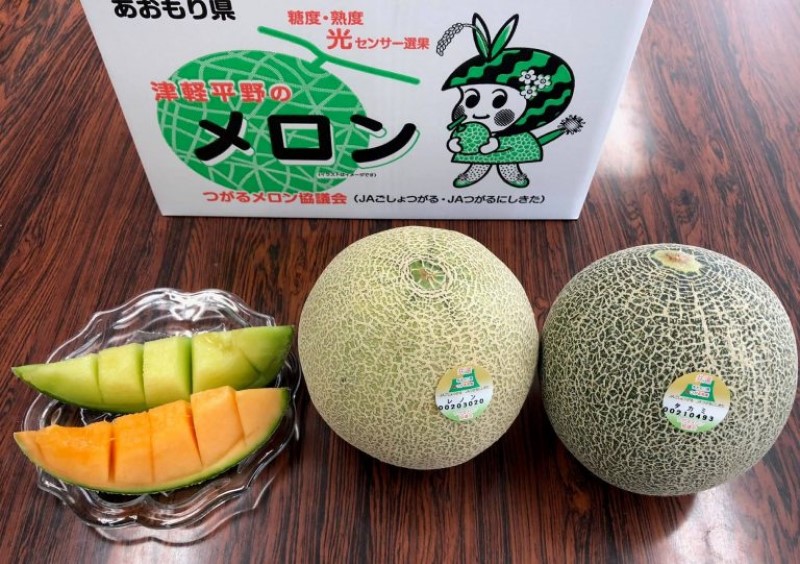 画像はつがるメロン協議会の「タカミ&レノン」の化粧箱。