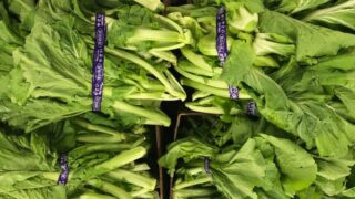 午前4時の青森市の気温は9.8℃。移動競売コーナーには漬物用野菜が並び始め、日増しに秋の気配が強まってきました。画像は高菜。