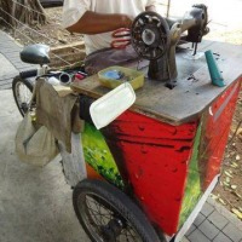三輪自転車に装備された骨董品級の年代物のミシン・・・。