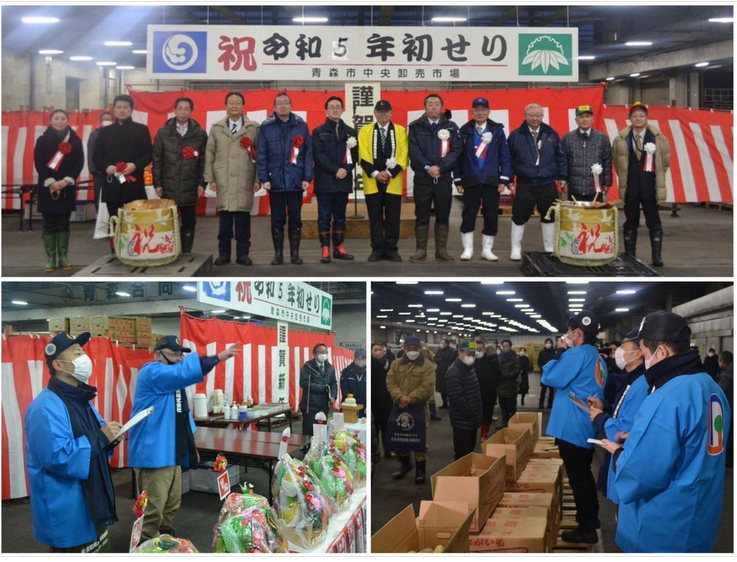 青森市中央卸売市場青果部では午前6時15分、初せり式が挙行されました