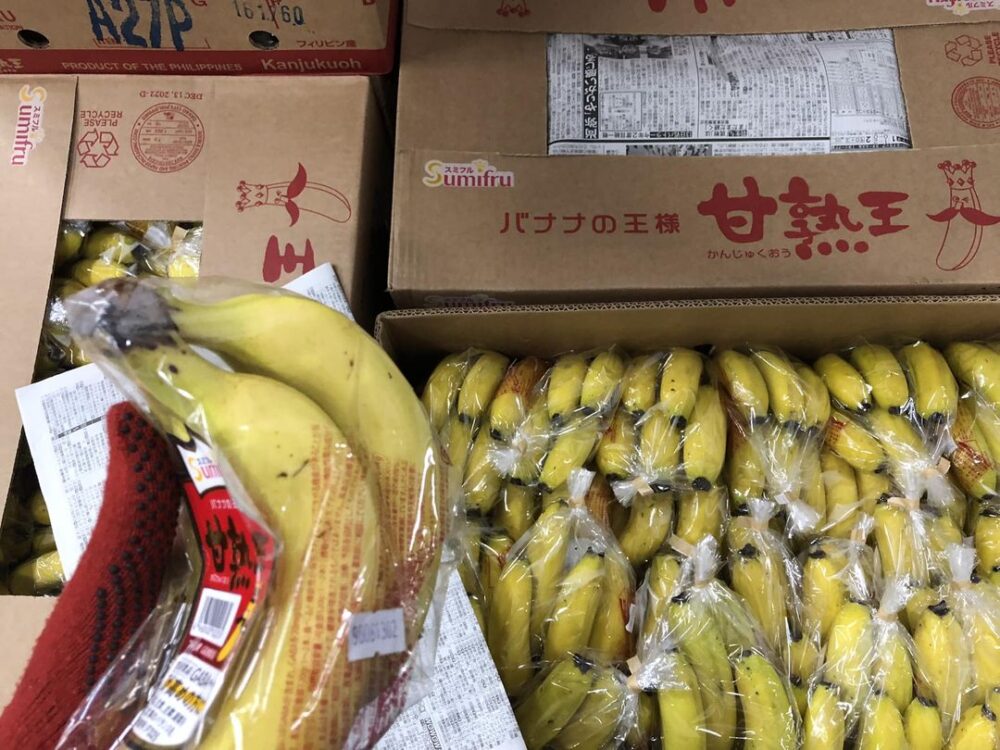 寒冷地の卸売市場では、追熟加工済みのバナナが風邪をひかないように防寒対策をとっています。