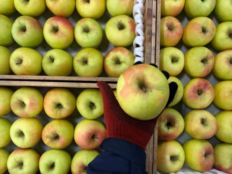 今の時期の黄色系の晩生種といえば「王林」が定番ですが、今年は小玉傾向でギフト向けの大玉の上位等級に不足感があります。