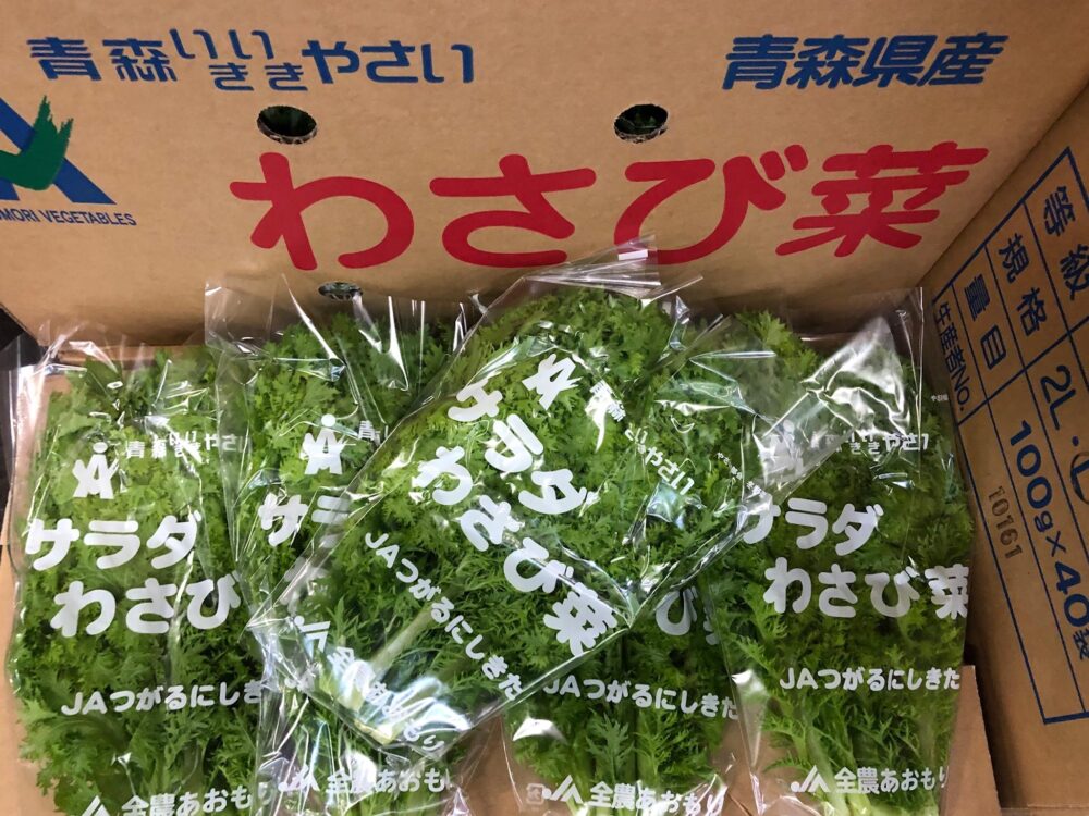 かき菜のようにひとつの株から何度も収穫できます。農家の貴重な冬の収入源です。似たような名前の「葉わさび」は全くの別物。「葉わさび」はわさびの若葉ですが、「わさび菜」は九州でよく食べられている「からし菜」を品種改良したものです。