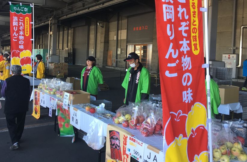 恒例のりんご即売は地元のJA青森の皆さんが担当。