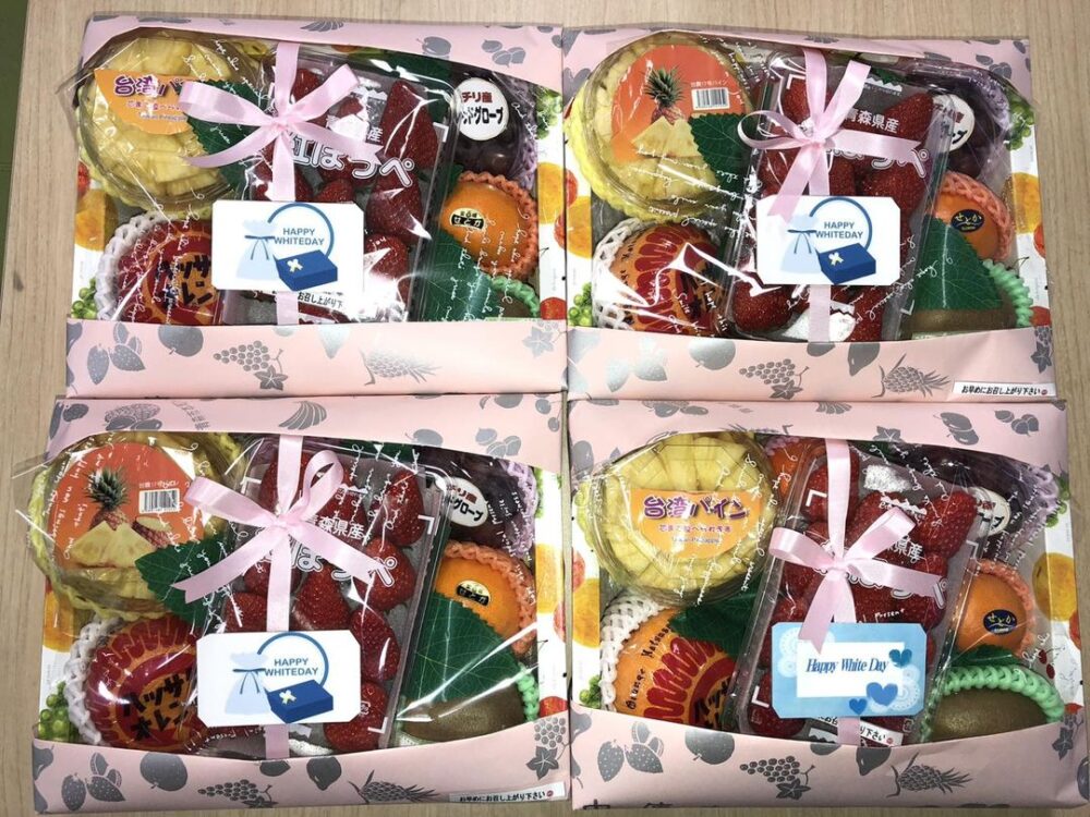青森市本町の果実専門店中傳本店さんに作ってもらったホワイトデー用のフルーツギフト。