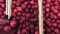 熟しても果皮の色が変わらないため、食べごろの見極めが難しいといわれますが、軸の周りにしわが寄ってお尻の出っ張りが自重でつぶれて茶色くなれば追熟完了です。