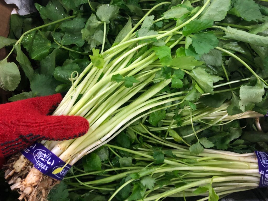 小松菜のように300gの束で出荷され、薬味の糸ミツバとは段違いのボリューム。